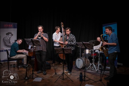 Misha Mullov-Abbado – double bass, Adam Chatterton – trumpet, flugelhorn, George Crowley – tenor sax, Tom Smith – alto sax, Liam Dunachie – piano, Jay Davis – drums